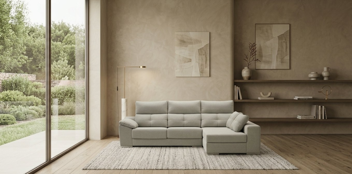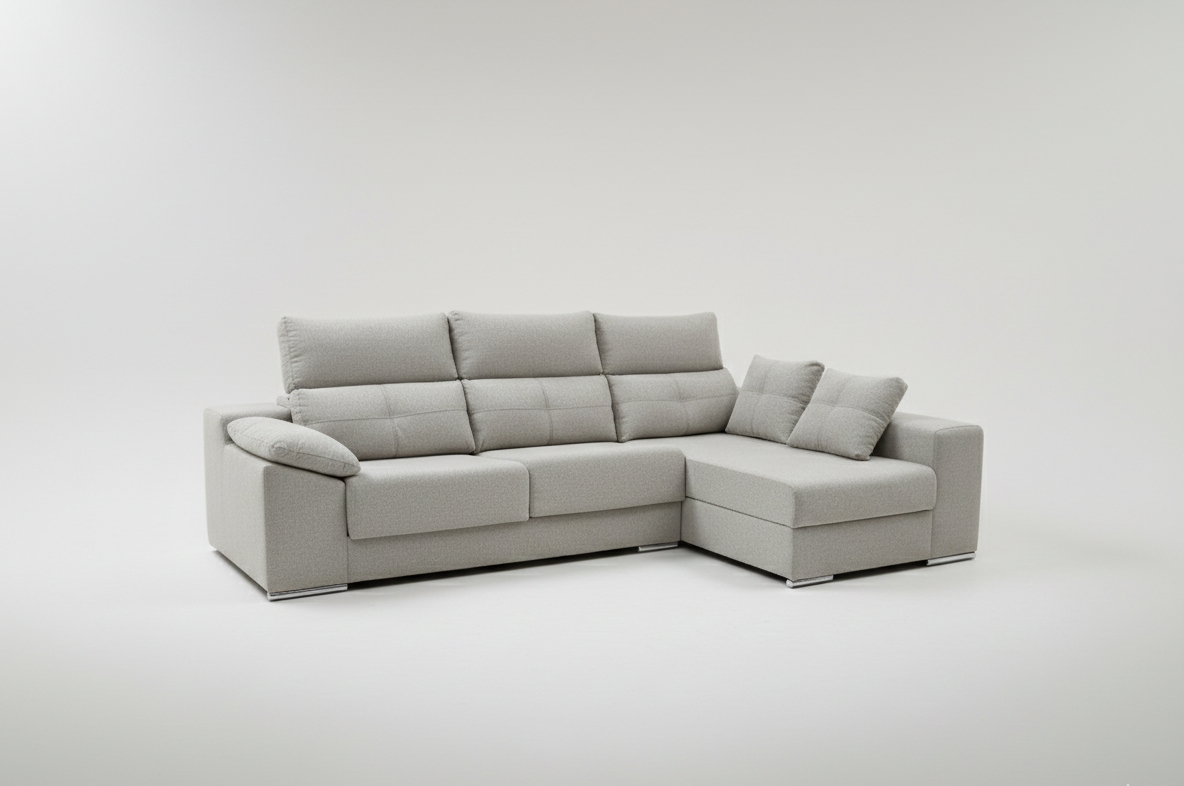 El sofá Modelo Berlín destaca por su diseño actual aportando elegancia y equilibrio al salón. Disponible en diferentes tapizados y colores para adaptarse a tu espacio. El de tienda es un sofá chaise longue derecho sin arcón + módulo de 3 plazas (300 CMS) y color s/oferta.